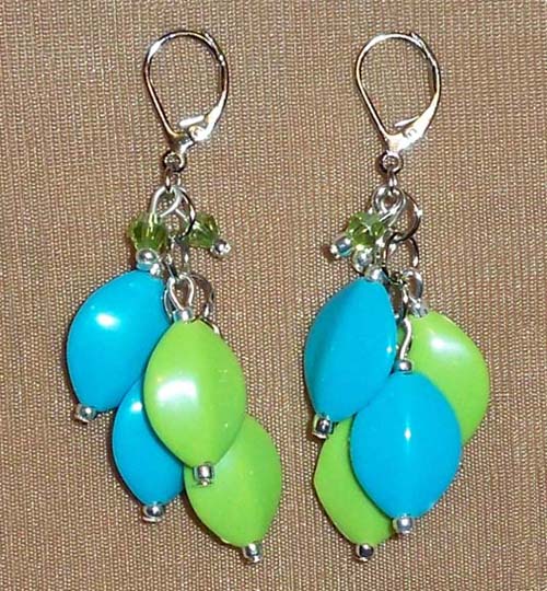Dangle Earrings: Lime & Teal Acrylic with lime crystals on Lever Back
