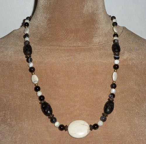 Necklace: Agate, Magnesite, Palm Wood