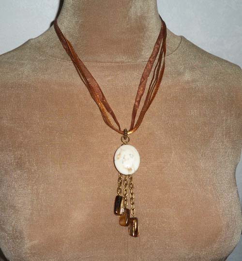 Necklace: Creamy Magnesite, Mother of Pearl on Ribbon & leather cording
