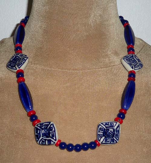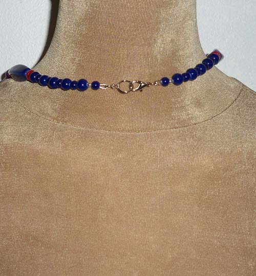 Earrings: Blue glass & Red Bamboo Coral on lever back (Pictures coming soon)